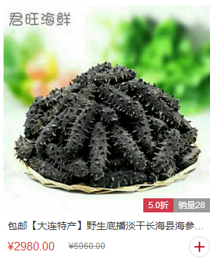 包邮【大连特产】野生底播淡干50g/6头左右海参5年龄辽参刺参限时特惠促销